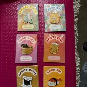 Add a playful touch to your outfit with this adorable enamel pin set. Featuring vibrant colors, these pins are perfect for accessorizing bags, jackets, or hats. A must-have for pin collectors and cat lovers alike.