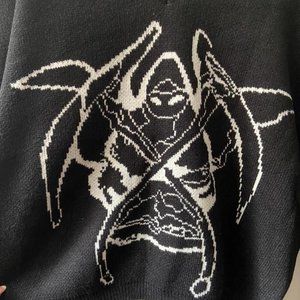 Grim reaper jacquard sweater v neck grim reaper knitted design. Oversized fit grandpa sweater
