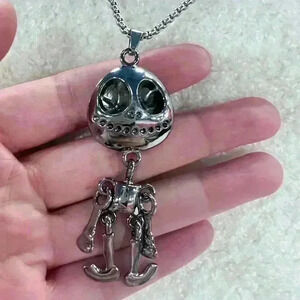 This Halloween-themed skeleton pendant necklace is a unique fashion accessory featuring movable joints, making the skeleton character more lively. The pendant is intricately designed, perfect for pairing with your Halloween party outfits
