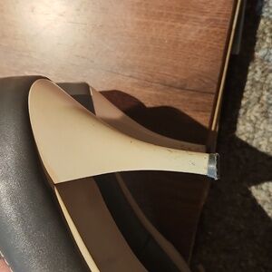 Cute heals with bows. Don't wear heels anymore at work. Grey with off white bow. Heel is about approximately 3 inches.