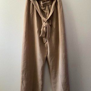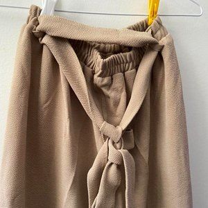 Cute High Waisted Tie Pants With Belt Included Elastic Waistband Tan Camel Color