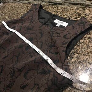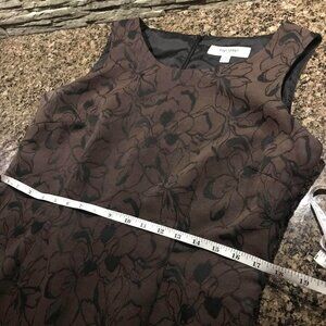 Cute Jones Studio Sleeveless Sheath dress. Brown with Black Floral Pattern