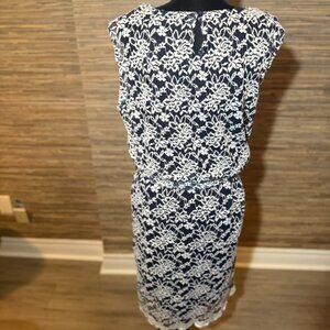 Cute Lace Dress White and Navy Size L EUC Sleeveless Fully LIned
