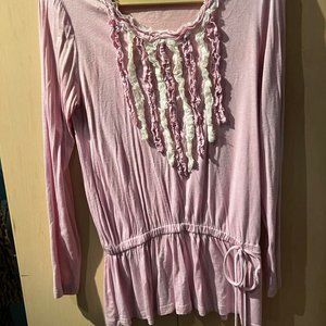 Cute Long-Sleeved Light Purple Ruffles Shirt Size M Medium