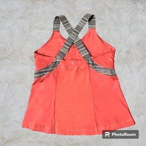 Cute Lululemon Coral Orange Push Your Limits Tank with Grey Stripe Straps