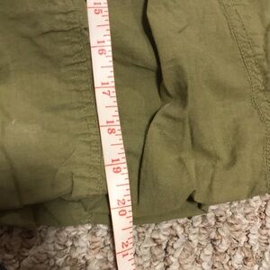 Size medium khaki in color. Elastic waist for premium fit stretching up to a 34. Side pockets for personals. In good used condition.