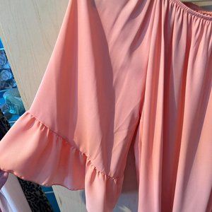 This neat top is a nice orange color in S Small, made by Goo Yoo USA. Made of 100% Polyester, it is roomy and has 3/4 length ruffle sleeves. It is brand new without tags and in pristine condition.