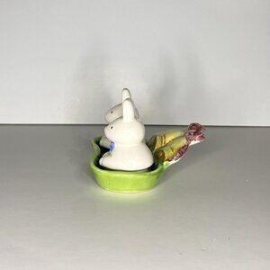 Cute Pair of Bunnies Sitting on a Tray Salt & Pepper Shakers