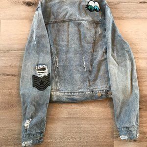 Rustic Jean Jacket with cute patches. Vanilla Star Size L. Has slash pockets. Excellent condition-only worn a couple of times.