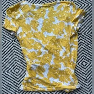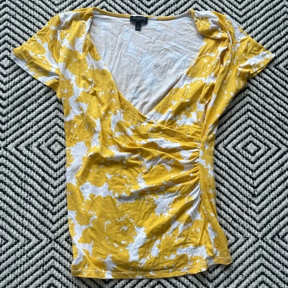 Excellent condition tee from Talbots. Size P (like size S/M). Has a faux wrap neckline going on. Cute yellow pattern. Smoke and pet free home!