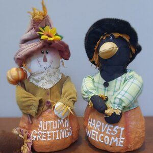 Cute Vintage Fall Crow and Scarecrow Pumpkin Decor Autumn/Harvest/Halloween