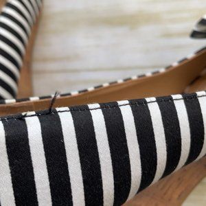 Black and white striped with bow detail. Some threads need trimming