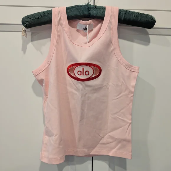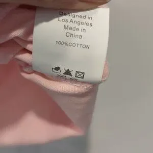 it states it's a medium but I would say it's more of a small. it has a cute peekaboo behind the embroidered logo