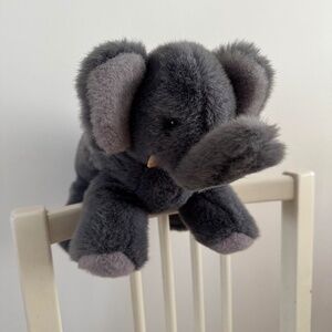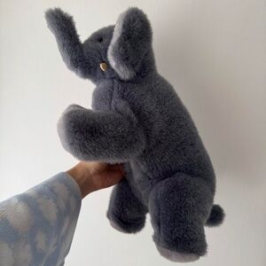 Cute blue grey elephant plush toy, Dumbo Babar style jungle animals plush stuffed animal toys! kawaii stuff plushy, big eared elephants with white ivory tusks plush plushie soft doll! Kawaii face and ears, adorable design w trunk and legs that can hang over a shelf, soft fuzzy fur. Dark blue to gray navy color, Cute wild animal mammoth toys kawaii stuffed animals stuffies plush dolls, fuzzy furry animals animals. Vintage retro from 1990s, amazing condition no damage, was cleaned well, comes from my personal childhood collection so can vouch for the condition and care! Great for Xmas Christmas gifts child children gift presents holiday present. #stuffedtoy #plushanimal #stuffedanimal #plushie #elephant