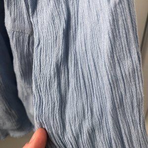 Cute periwinkle/light blue top with crochet sleeve detail.