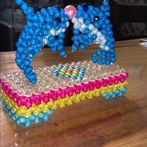 Dolphin display that is made from these colourful beads hand made. So much effort was put in to this so I hope someone buys this.