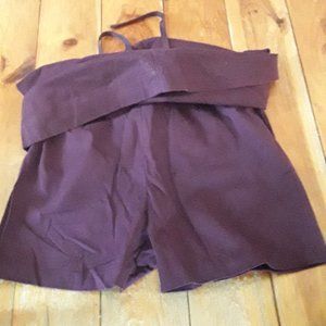 Cute plum colored skort, combination skirt and shorts. Has zipper, buttons and tie at waist. Side slash pockets.