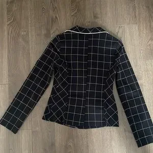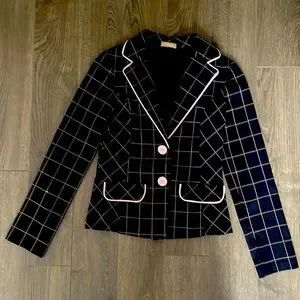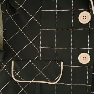 Cute suit jacket; super stretchy material with pink stitching and pink button and edging detail