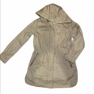A must have jacket for spring and fall! Has adjustable waist strings for a flattering look! Worn less than 5 times in perfect condition! Fits S/M