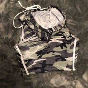 Army pattern and color cute workout sleeveless hoodie and shorts set