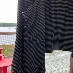 Comfy is what this tunic by Cutloose is all about. It’s a greenish taupe stripe with navy…but also looks black. Size medium.