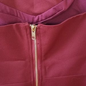 Zipper at back for closure, cutout on both side, pepplum flare at bottom, straps are non adjustable.