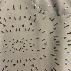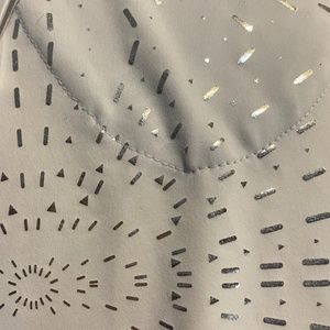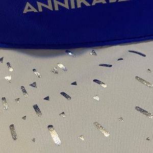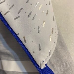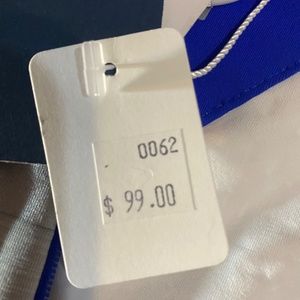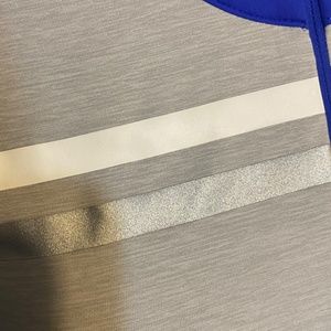 Colours up front are a light grey with blue & white & the back is white with silver design.