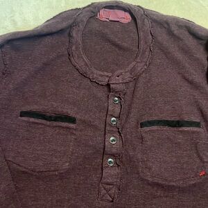 Cutter & Buck Distressed Henley Men’s Ribbed Knot Long Sleeve sz L Maroon