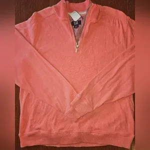 Size medium GUC Cutter & Buck quarter zip pullover. Coral color, vintage washed, cotton, and modal material. Beautiful feeling, factory fading for vintage effect.