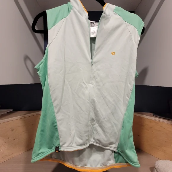 Pearl Izumi cycling jersey. Green with orange trim Women's XL, fits like large. Two elasticized back pockets. 1/4 zip in front.