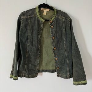 Cydney Mar Denim Jacket with Green & Gold Trim – Size M