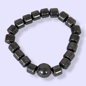 Cylindrical Magnetic Hematite Beaded Bracelet