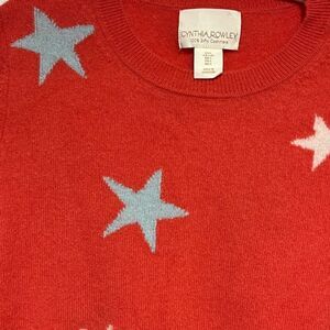 Cynthia Rowley 2-Ply Cashmere Crew Neck Orangey Pink Star Detail Sweater Sz L