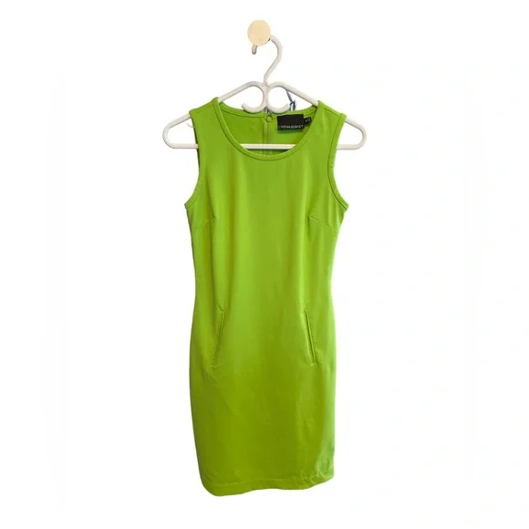 Sleeveless midi dress. 2 front pockets with zipper closure on backside. Good stretch, gently used in good condition. Pit to pit 15.5”