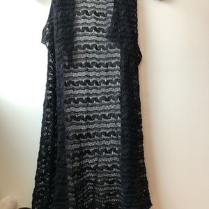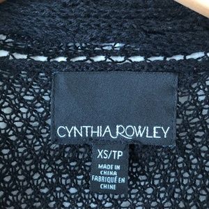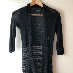 Stunning calf-length Cynthia Rowley black knit shawl with 3/4 length sleeve. Multiple knit patterns throughout.