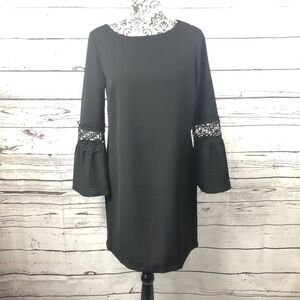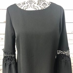 Cynthia Rowley Lace Inset Bell Sleeve Dress Black 4