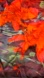 Bright and colorful abstract real silk scarf by Cynthia Rowley. Features a mix of red, orange, and green hues. 13.5” wide by 64” long