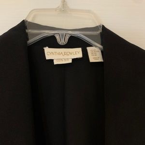 Details: Beautiful black silk jacket. Both classy and elegant. The perfect travel companion. Can be worn on cool nights as an accompaniment to your great outfit. 16" armpit to armpit, 23" long sleeve and 23.5" length.