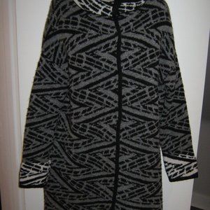 48% Acrylic 25% polyester 23% wool and 4% spandex. Hand washable.