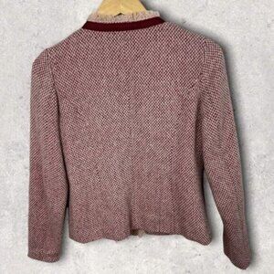 Cynthia Rowley Tweed Blazer Jacket Red Size Small Retro Fringe Bohemian Knit S
