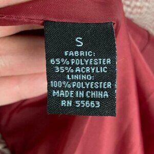 Cynthia Rowley Tweed Blazer Jacket in Red / Pink and Women's Size Small. Poly and acrylic. Lined. Fringe details. Long sleeves. Crew neckline. Decorative front pockets. Hook and loop closure. Dry clean. Very good pre-loved condition. No visible flaws.