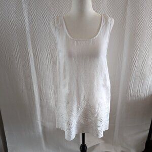 Cynthia Rowley White 100% Linen Embroidered Hem Sleeveless Top Medium Summer