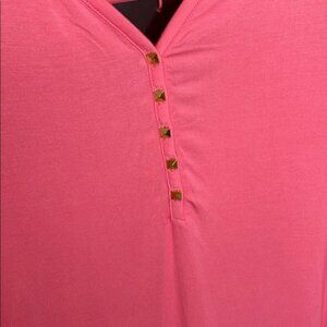 Cynthia Rowley Women Pink V-Neckline Button Down 3/4 Sleeves Top Plus Size 1X