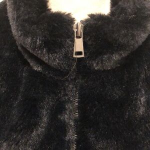 Cynthia Rowley black faux fur bomber jacket L super soft and mint condition