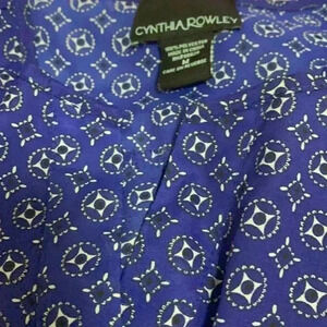 Lightweight summer blouse in an attractive blue on blue and white pattern.