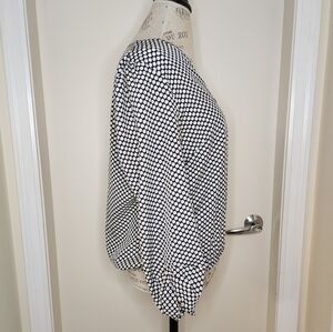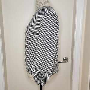 Mediterranean Blue & off White Polkadot Print deep Vneck 3/4 sleeve Blouse top, by Cynthia Rowley.