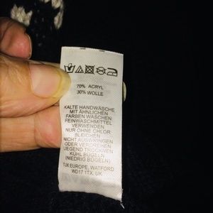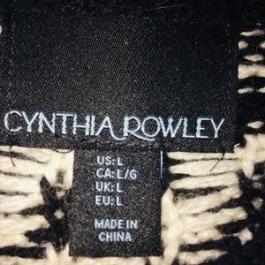 Cynthia Rowley size L black and white sweater, Europe, Watford, UK. Made from 70% Acrylic 30% wool and is in perfectly new condition. Literally wore once, then lost 70 LBS. Very warm and stylish, can be dressed up with a pencil skirt or dress pants and the like. Same pattern on both sides, small slits on both sides at bottom. Back is slightly lower, appx. 2", giving it an edgy look. Great for the upcoming season, so warm.
