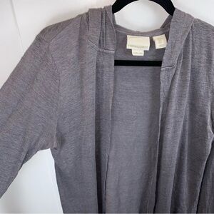 Cynthia Rowley sz M Dark Grey 100% Linen Open Hooded Cardigan Tunic Sweater