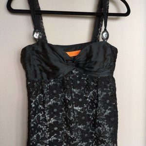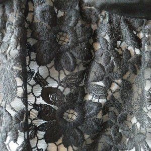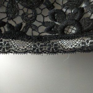 Best way to describe this top is "art" silk top Beautiful black lace and black silk with shoulder lace covered jewel detail too - great for holiday parties! the lining is in ivory silk and the contrast is just beautiful.