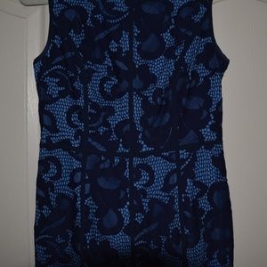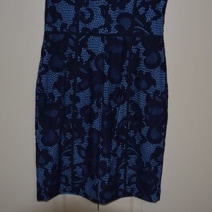 Vertical grid lines add a slimming effect to the navy, lace Elenora dress by Cynthia Steffe.